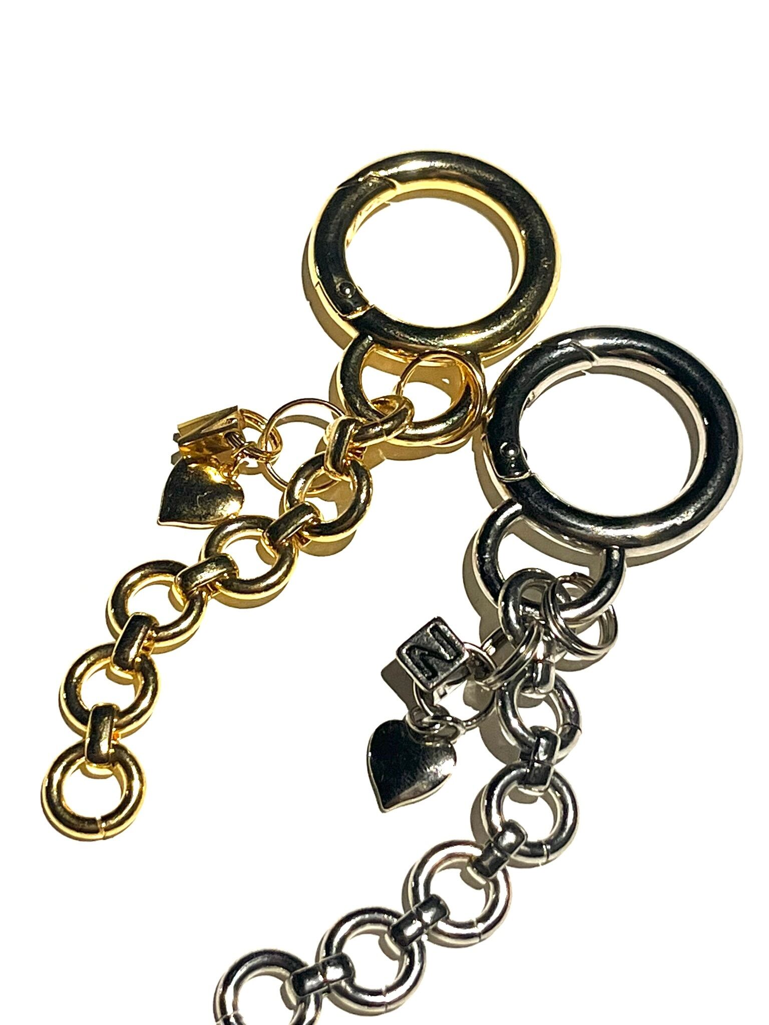 大きめなカラビナを留め具として ご自身のお持ちの鍵を付けられるキーリング。